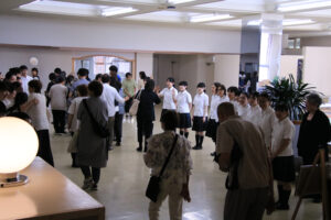 出演した音楽コースの生徒がロビーでお見送りしました。