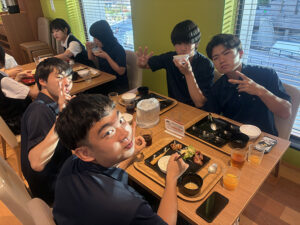 疲れがピークになりつつも、全員しっかり起きて朝食を取りました。