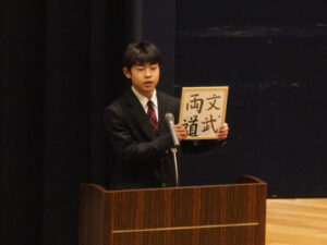 2026.02.02中学校 立志式 2026年1月30日(金) 明の星ホールにおきまして、立志式を行いました。 立志式を迎える中学3年生の生徒は、事前に毛筆で書いた四字熟語を保護者に披露し、これからの夢に向かう決意を一人一人述べていました。 中学2年の代表生徒と、学校長がお祝いのことばを贈りました。 そして、カトリック弘前教会の小松史朗神父様からはお祝いのことばと祝福をいただきました。 3年生の皆さん、自分の夢に向かって頑張ってください。 応援しています!